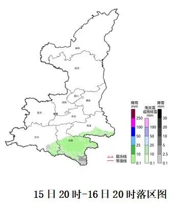 02月15日20时-02月16日20时:全省阴天,秦巴山区东段、商洛有小雪(0~1毫米),汉中南部局地、安康南部有小雨或雨夹雪(0~8毫米)。陕南大部日平均气温下降4℃左右。