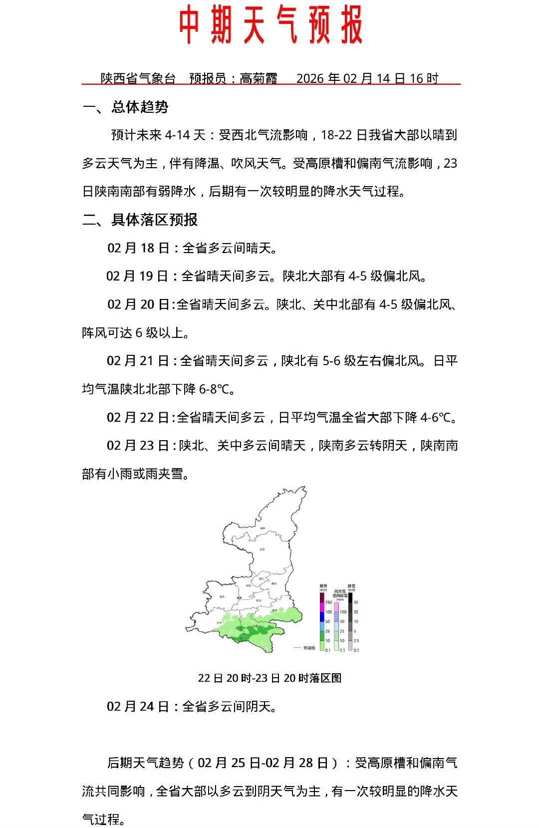 陕西发布中期天气预报